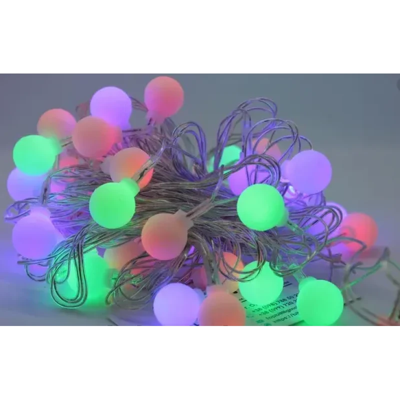 Гірлянда світлодіодна Білі Кульки складається з 40 LED фігурок, що змінюють одночасно кілька кольорів. Led гірлянда має прозорий колір дроту. Яскраві фігурки кульки будуть ефектно виглядати на ялинці або в отворах вікон та дверей.