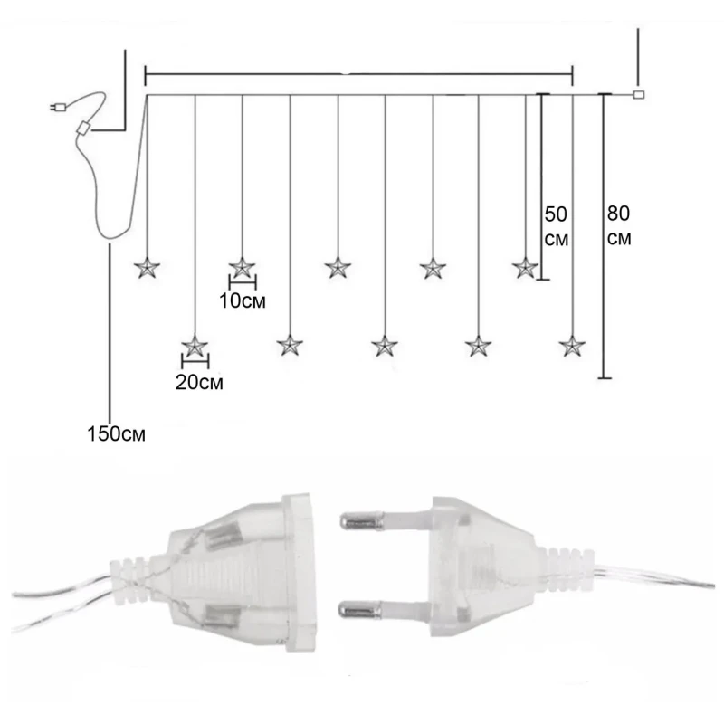 - Довжина штори: 50см з маленькою зірочкою/80см з великою зірочкою