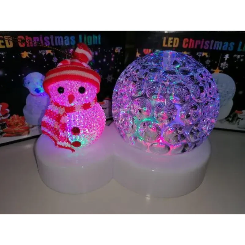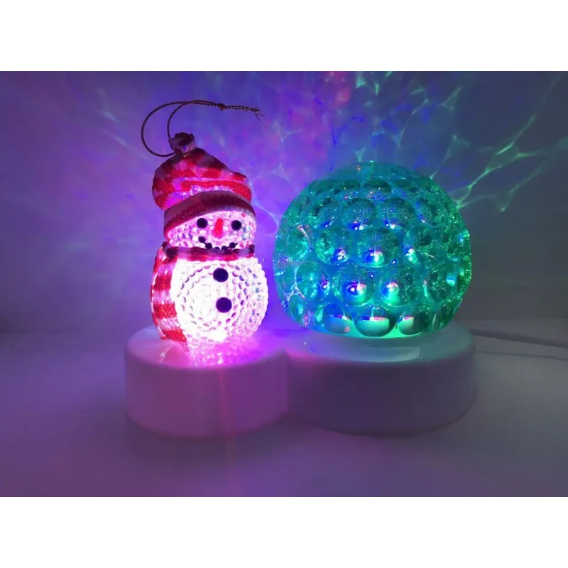 Світлодіодний диско шар + Сніговик, світильник новорічний