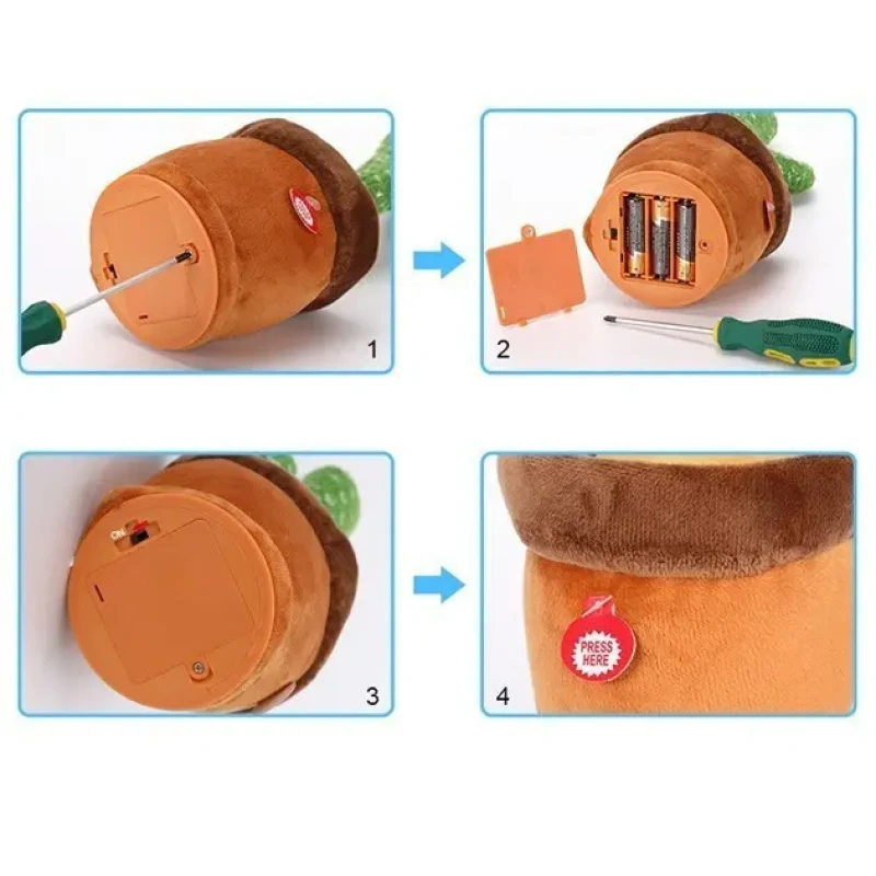 Записуючий пристрій в кактусі запише будь-яку вашу пропозицію, яку Ви вимовите поруч з кактусом, що танцює, і через 1-2 секунди він повторить ваші слова дуже смішним голосом і витонченим танцем!
