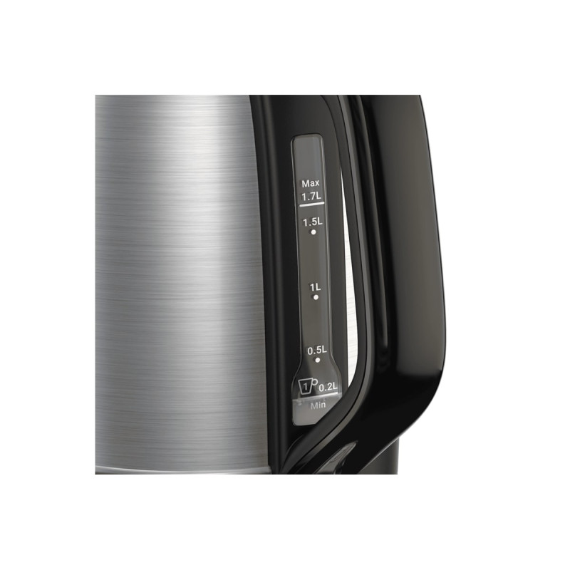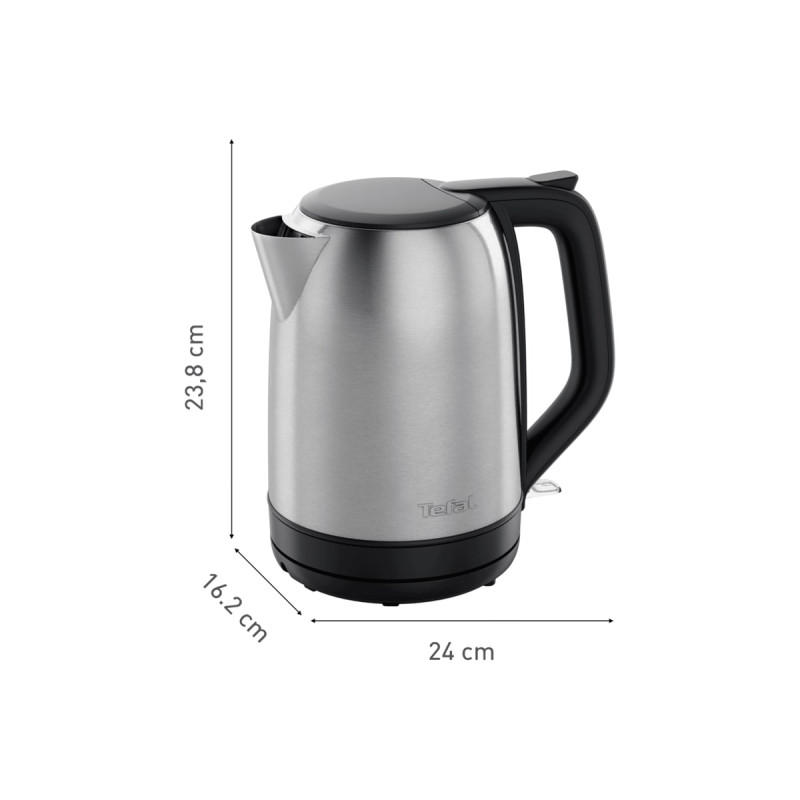 Tefal Subito — електрочайник об’ємом 1.7 л з потужністю 2400 Вт для швидкого закип’ятіння води. Корпус з нержавіючої сталі та пластику, закрита спіраль для безпеки, поворотна на 360° підставка. Знімний фільтр проти накипу, індикатор рівня води, автоматичне відкривання кришки кнопкою. Чорно-сріблястий дизайн, вага 1.2 кг — ідеальний для кухні чи офісу.