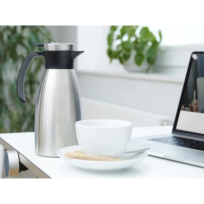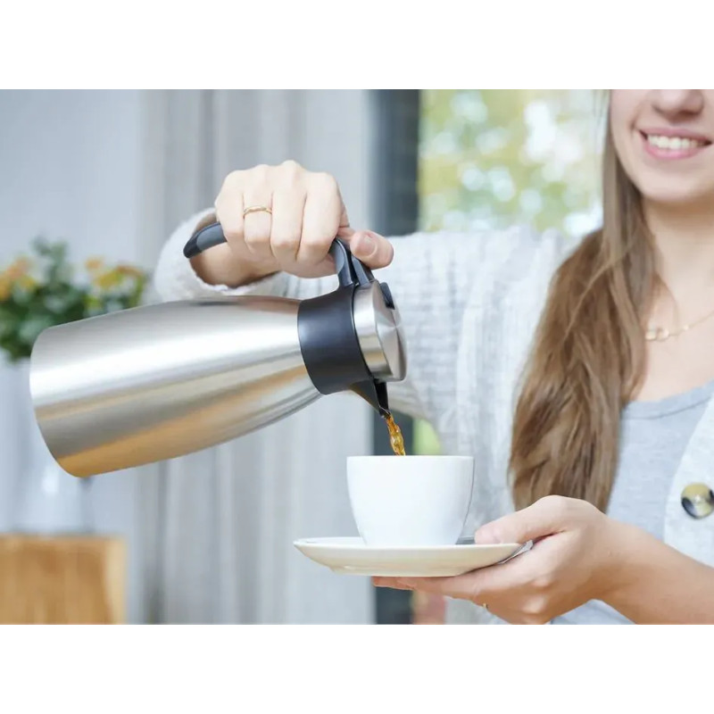 Tefal Soft Grip — термоглечик із подвійними стінками з нержавіючої сталі, що зберігає напої гарячими до 12 годин і холодними до 24 годин. Оснащений кришкою Quick Tip для наливання однією рукою, м’якою нековзною ручкою, герметичною конструкцією та нековзною основою.
