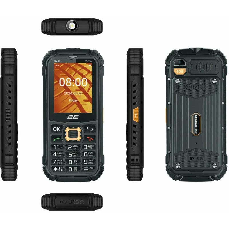 Мобільний телефон 2E R240 – універсальний і надійний засіб зв’язку, який має всі необхідні функції для комфортного користування. Високий рівень захисту від пилу та води, тривала автономність, інтуїтивно зрозуміле керування і наявність усіх необхідних інструментів роблять його оптимальним рішенням для тих, хто шукає надійний пристрій для повсякденного використання.
