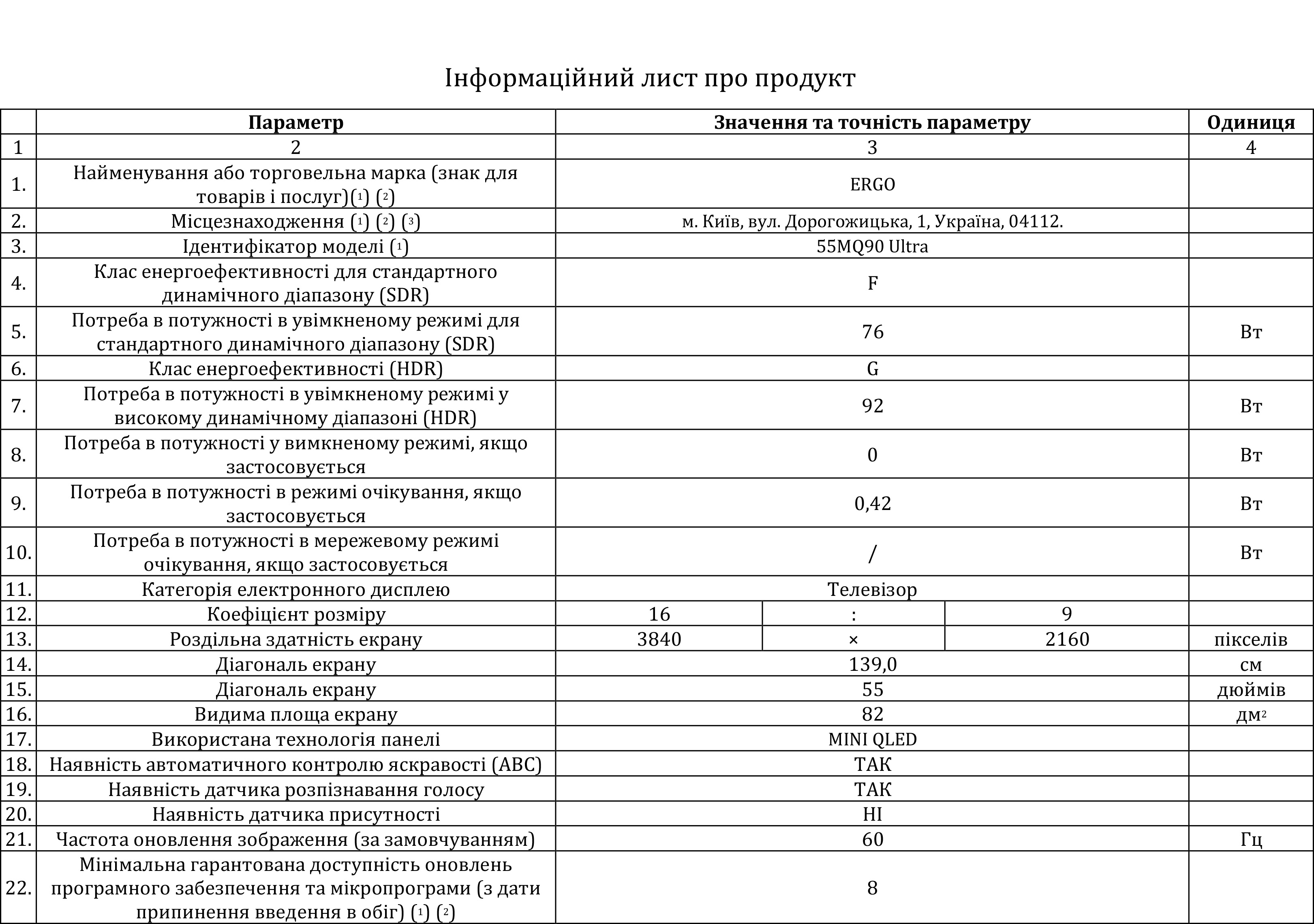 | Діагональ, дюйм | 55 |
