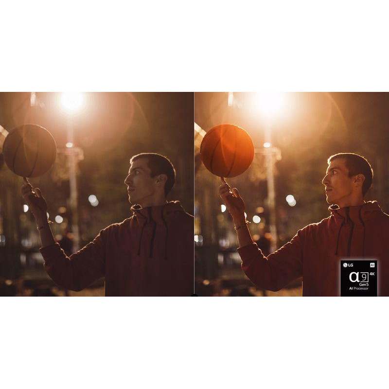 мудрість Естетика та краса — це швидкий процесор п'ятого покоління LG α9 зі штучним інтелектом. Він відповідає за надання зображенню природної глибини та робить кольори ефектно яскравими та точно відтвореними. Використовуючи досягнення в галузі глибокого навчання, він покращує деталі та об'єкти на передньому та задньому плані та підтримує технології, що допомагають отримати зображення і звук, як у кінотеатрі, оптимізуючи оброблення зображень зі спортивних заходів або підтримуючи ігрові опції.
