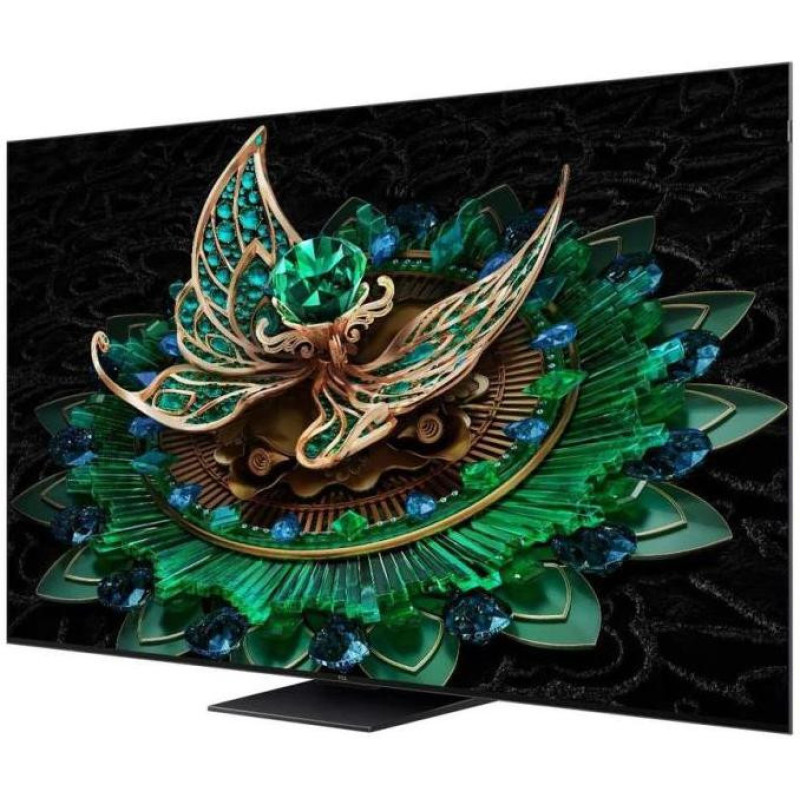 ТБ 65MQLED85 оснащений 65-дюймовою VA-панеллю з роздільною здатністю 3840×2160 пікселів і частотою оновлення до 144 Гц при 4K і до 240 Гц при Full HD. Підсвічування реалізовано за технологією Mini LED з використанням до 1008 зон локального затемнення, забезпечуючи високу яскравість до 2400 ниток та глибокий чорний колір. Технологія Quantum Dot Pro розширює колірне охоплення, підтримуються формати HDR10, HDR10+, HLG та Dolby Vision IQ. Процесор AiPQ Pro відповідає за апскейлінг та оптимізацію зображення в реальному часі. Аудіосистема 2.1 включає два динаміки по 15 Вт та сабвуфер потужністю 20 Вт, підтримуючи Dolby Atmos та DTS:X. Операційна система Google TV надає доступ до широкого спектру програм та сервісів, включаючи Netflix, YouTube та інші. Підтримуються голосові помічники Google Assistant і Amazon Alexa. Модель TCL 65MQLED85 оснащена чотирма HDMI 2.1 портами з підтримкою eARC, VRR, ALLM та QMS, двома USB 2.0 портами, Ethernet (LAN), Bluetooth 5.0 та Wi-Fi 802.11ac. Також є входи для антени, AV, CI+ (версія 1.4), оптичний аудіовиход та роз'єм для навушників. Телевізор підтримує цифрові тюнери DVB-T2/T/C/S2/S та аналогові сигнали. Габарити TCL 65MQLED85 без підставки становлять 1444×905×34 мм, вага – 22,4 кг. Підтримується кріплення VESA 300х300 мм. Енергоспоживання в режимі SDR становить 95 кВт·год на 1000 годин, HDR - 260 кВт·год. TCL 65MQLED85 пропонує високу продуктивність, сучасні технології відображення та широкі можливості підключення в одному пристрої.
