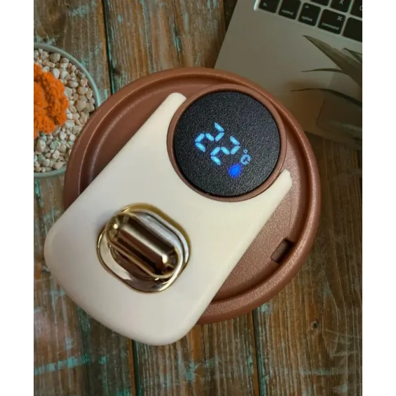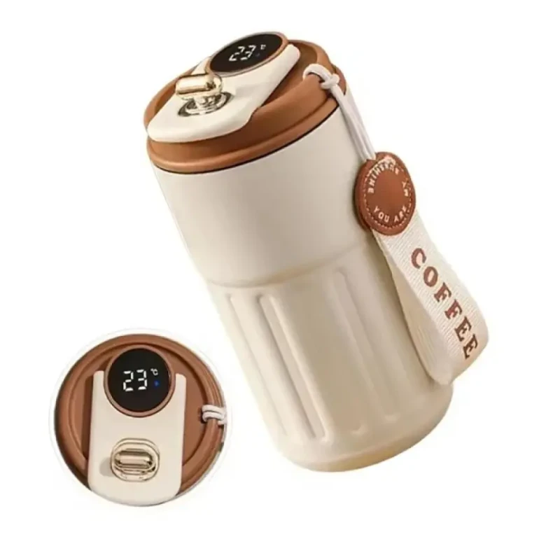Елегантний і функціональний термокухоль з нержавіючої сталі об'ємом 380 мл. Вакумна подвійна стінка зберігає гарячі напої до 6 годин, холодні до 12 годин, а LED-індикатор на кришці показує поточну температуру вмісту одним натисканням.