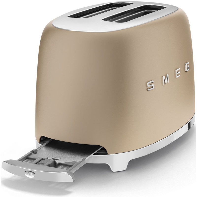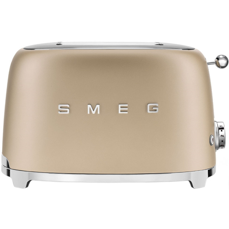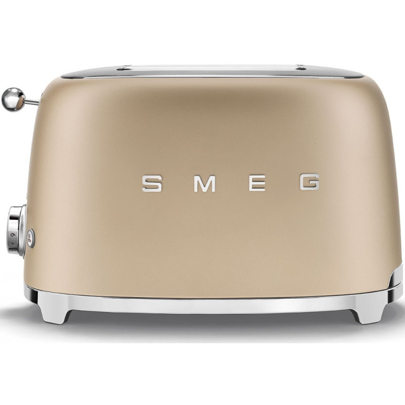 Тостер з ексклюзивної лінії Smeg Retro 50's вражає з першої миті своїм стильним корпусом з лакованої нержавіючої сталі. Розкішний характер цієї унікальної моделі підкреслюють хромована основа і ручка регулювання з підсвічуванням. Навіть рукоятка активації вражає блиском благородної нержавіючої сталі. Повна розкіш для кожної стильної кухні.