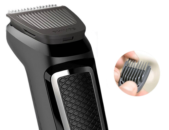 Тример укомплектований дев'ятьма насадками, які допоможу вам виконувати стрижку на професійному рівні в домашніх умовах. Використовуючи сам тріммер без гребінця, ви зможете створити рівні контури стрижки, підбрити баки або начисто виголити шию. Якщо ж потрібно придати чіткість лінії навколо губ або створити складну еспаньйолку, скористайтеся металевим міні-тримером. Спеціальна насадка швидко і безболісно видаляє волосся в носі і вухах. Шість насадок - гребінців дозволять варіювати довжину стрижки або бороди: дві насадки для щетини (1,2 мм), одна регульована насадка (3-7 мм), три універсальні насадки (9,12,16 мм).