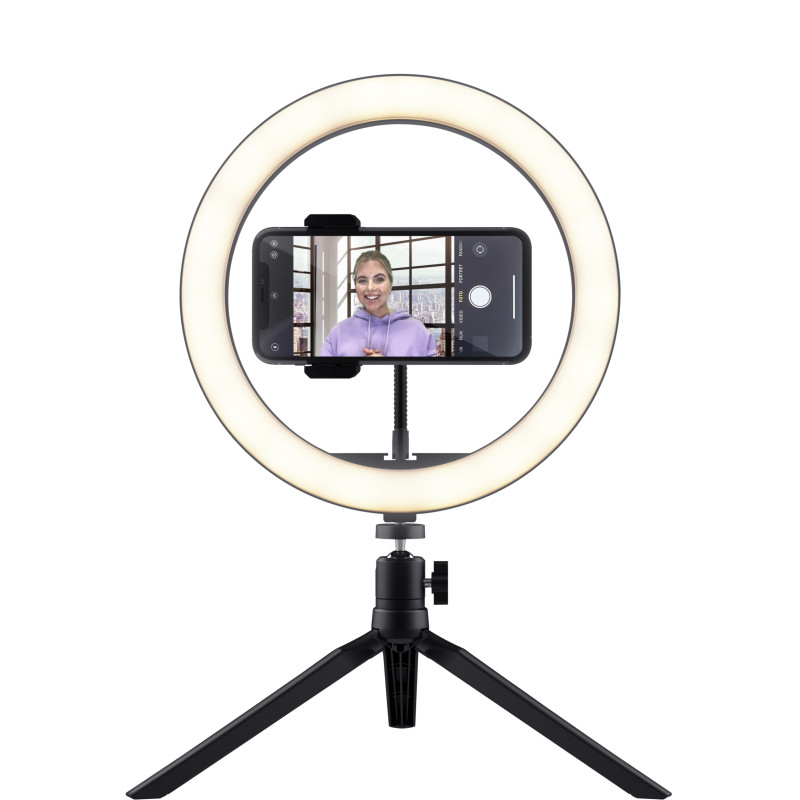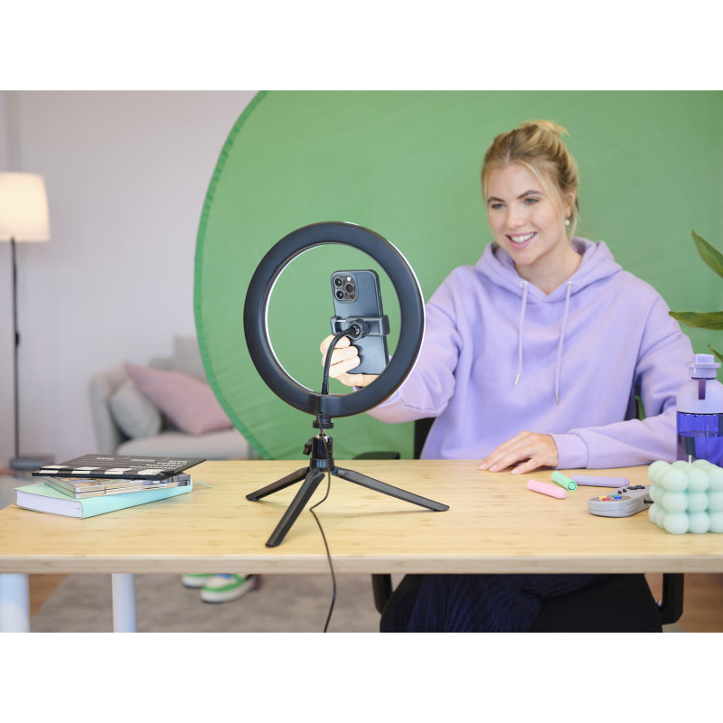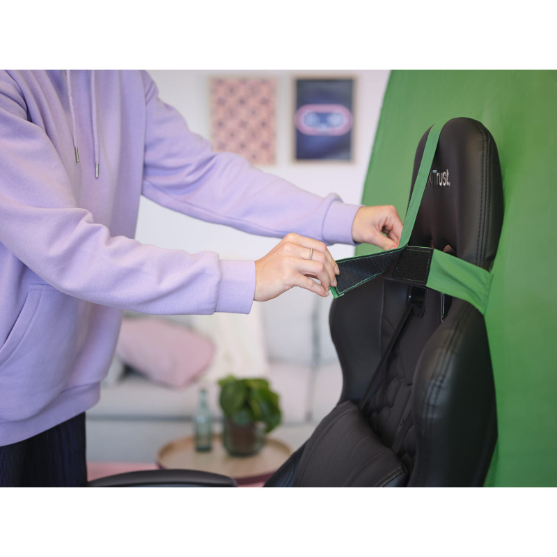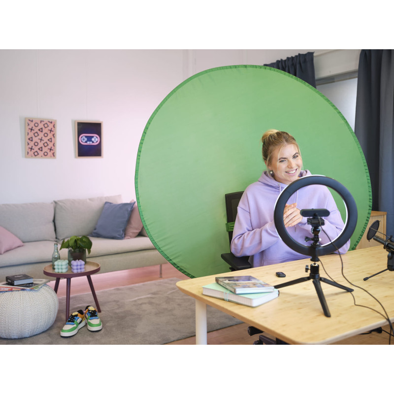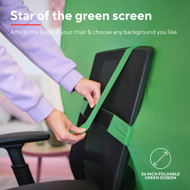 Комплект Trust Maku+ поєднує 10-дюймовий LED-кільцевий світильник та складаний зелений екран 56 дюймів для швидкого налаштування фону та освітлення під час стримінгу. Зелений екран кріпиться до більшості стільців регульованими ременями-липучками, а світильник регулює яскравість і температуру світла через Bluetooth-пульт. Набір сумісний з телефонами, веб-камерами та камерами, живиться від USB і дозволяє почати запис чи трансляцію без додаткового обладнання.