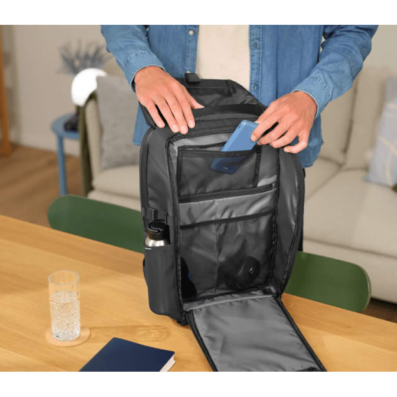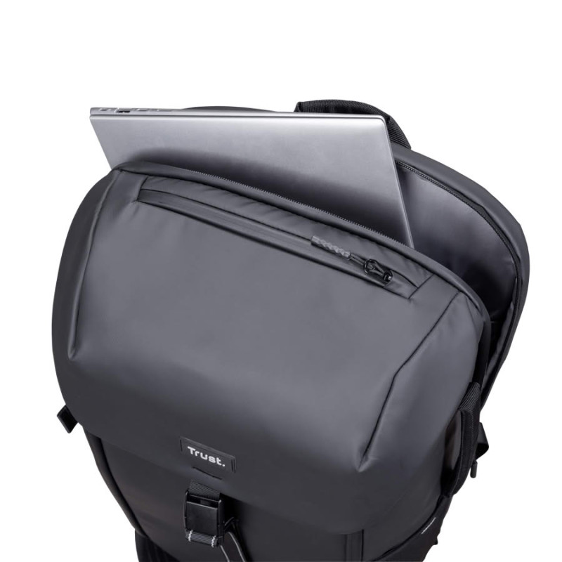 Рюкзак Trust Jersey Travel 17" - це місткий 25-літровий міський і дорожній рюкзак, створений з переробленого PET та оснащений продуманою системою організації мов. Основне відділення повністю розкривається, що забезпечує легкий доступ і швидке пакування. Комфорт під час носіння забезпечують посилену спинку, м'які лямки та нагрудний ремень. Рюкзак підтримує кріплення на валізі, що робить його зручним у подорожах.