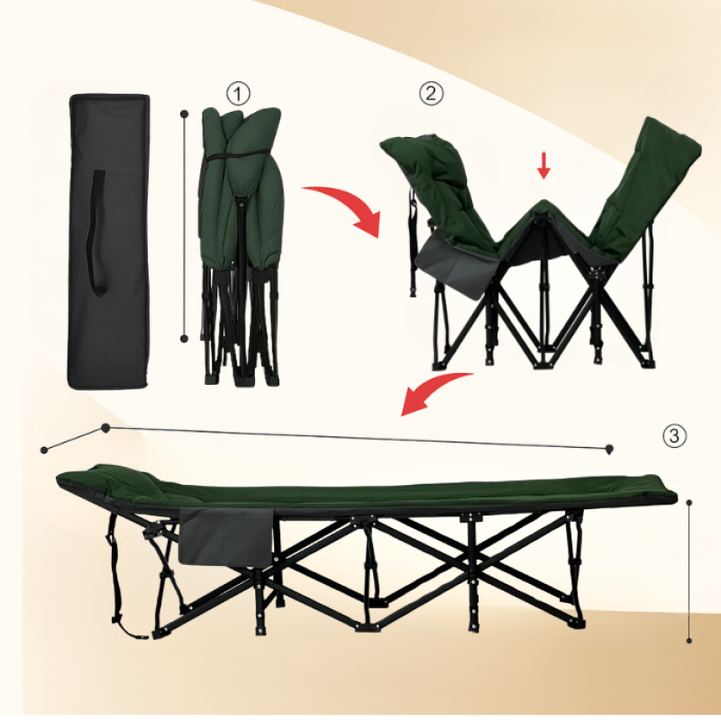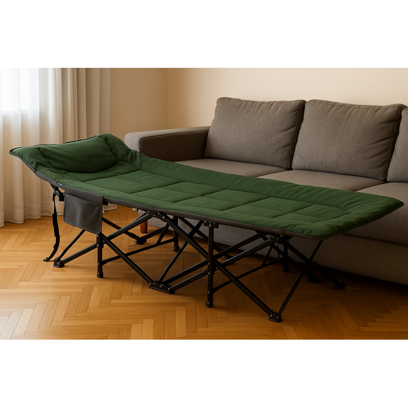 Розкладачка легко складається і займає мінімум місця під час зберігання чи транспортування, що робить її чудовим вибором для походів, подорожей або дачного відпочинку. LEOBRO поєднує в собі міцність, практичність та зручність, дозволяючи насолоджуватися повноцінним сном і відпочинком у будь-яких умовах.