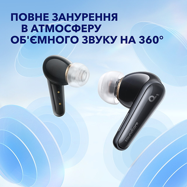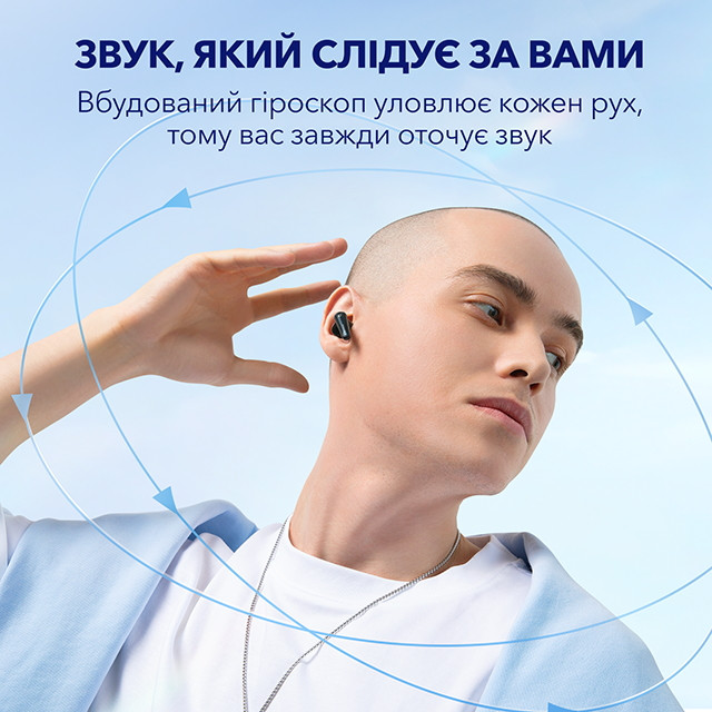 Під час прослуховування музики та перегляду фільмів вбудований гіроскоп та алгоритм просторового звуку відстежують рухи вашої голови, щоб завжди тримати вас у центрі звуку, забезпечуючи відчуття повного занурення.