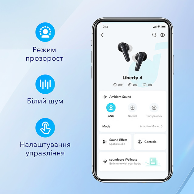Виберіть свій сценарій за допомогою програми Soundcore та насолоджуйтесь чистим звуком без стороннього шуму.