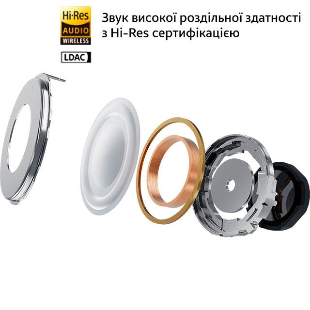 *Сертифікація Hi-Res Audio Wireless базується на протоколі передачі LDACTM HD, а пристрій відтворення має підтримувати протокол LDACTM. Логотипи LDACTM and LDAC є товарними знаками корпорації Sony.