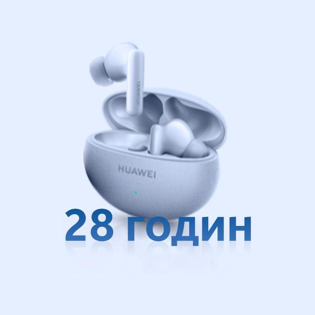 *Дані про час автономної роботи отримані в результаті лабораторних тестів Huawei. Навушники підтримують до 28 годин автономної роботи при середньому рівні гучності при відтворенні звуку в форматі AAC з виключеним приглушенням шуму. Фактичний час автономної роботи буде змінюватися залежно від рівня гучності, джерела звуку, умов навколишнього середовища, включених функцій та звичок використання.