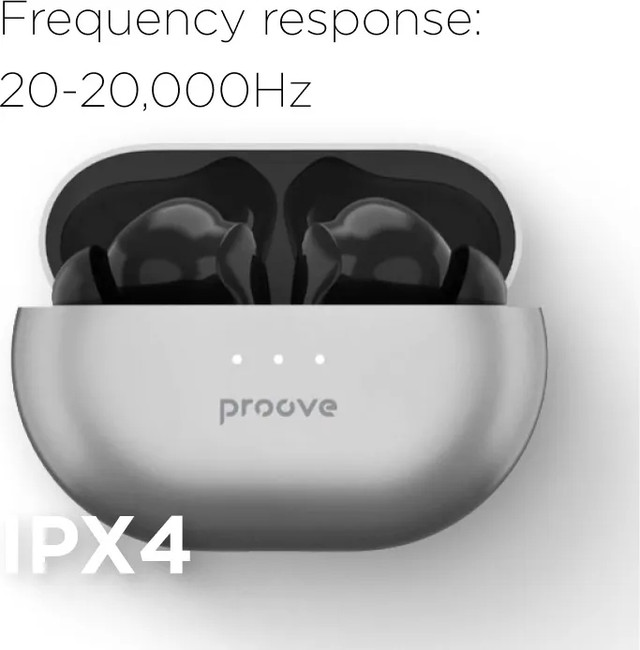 Технологія Wireless гарантує повноканальне звучання у високій роздільній здатності з широкою частотною характеристикою в межах 20-20000 Гц. Мініатюрний динамічний випромінювач і високочутлива діафрагма забезпечують чистий, яскравий і насичений звук без будь-яких перешкод і шумів. У навушниках Proove Woop TWS ваші улюблені хіти звучать просто приголомшливо. Опір у 32 Ома дає можливість організувати стабільні пари з різними гаджетами.