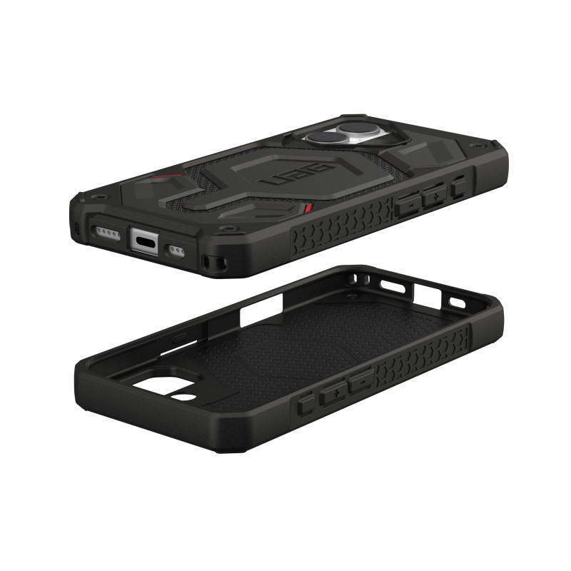 Чохол UAG Monarch Pro MagSafe Kevlar Black для iPhone 17 створінь для тих, хто вимагає абсолютного максимуму від захисту. Завдяки п'ятишаровій конструкції та використанню арамідного волокна Kevlar він забезпечує надзвичайну міцність та довговічність. Вбудований MagSafe робить чохол сумісним із сучасними аксесуарами та зарядними пристроями. Це стильне рішення для активної повсякденної життя.