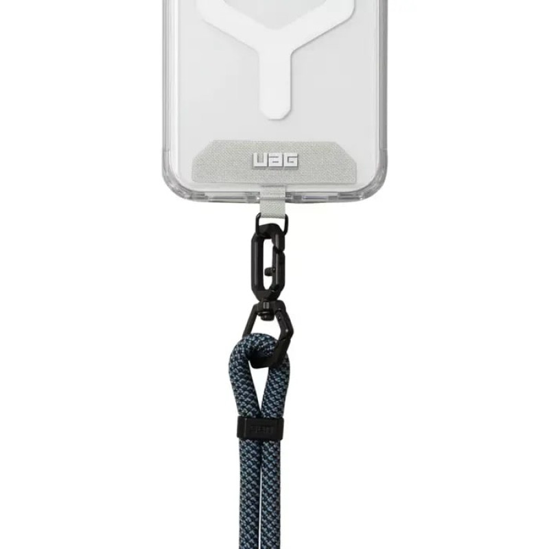 Ремінець UAG Civilian (964420114151) для смартфона — зручний аксесуар із тканого поліестеру (7 мм товщиною), Cloud Blue кольору, для повсякденного носіння телефону через плече. Регульована довжина, міцний карабін на 360° і спеціальний роз'єм забезпечують надійність під час активностей. Кріпиться до чохла непомітним "якорем". Легкий і стильний, ідеальний для прогулянок чи подорожей.