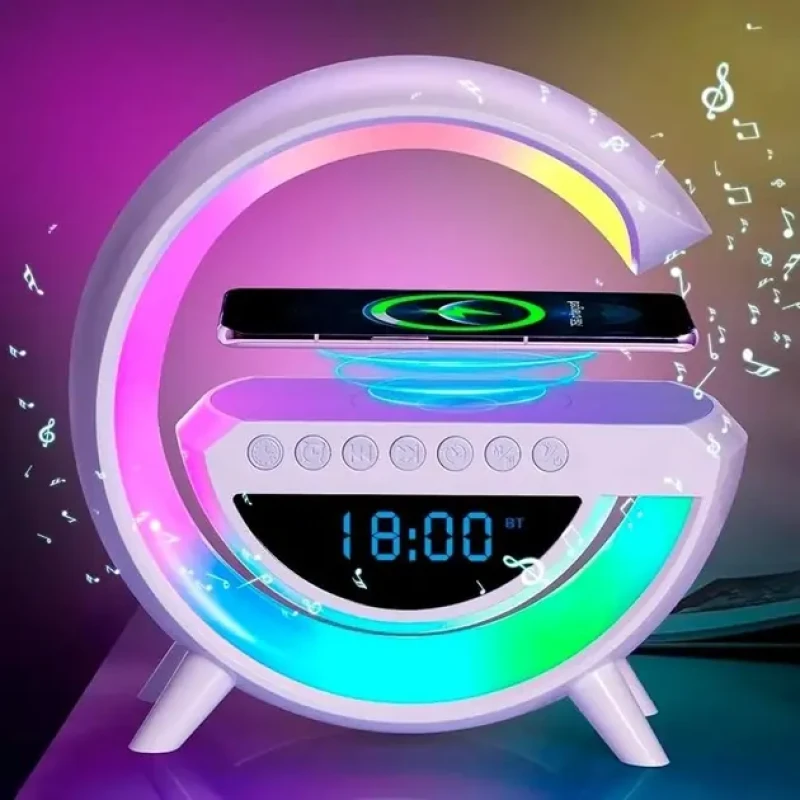Настільна лампа G-Smart Light Sound Machine з Wireless charging 15W – це сучасний прилад, який не лише освітлюватиме кімнату, виступатиме як нічник, будильник, але й має бездротову зарядку та стильний неповторний дизайн. Немає кращого пристрою, який допоможе вам розслабитись після довгого дня, ніж спокійна музика від розумної світлозвукової машини. Все, що потрібно зробити, це розслабитися і спостерігати, як один із 12 кольорів створює атмосферу, створюючи ідеальний настрій для будь-якої кімнати. Ідеальний світильник для тих, хто хоче мати якість на своїй тумбочці. Він оснащений зарядною станцією і додатком для керування, - ви можете керувати різними функціями через нього, наприклад, чи хочете ви прокидатися під лампу, що нагадує схід сонця, або навіть всі кольори веселки в одній колірній схемі. Ви також можете налаштувати лампу, завантаживши власні аудіокліпи та пісні у програму. Лампа має унікальні функції, які рідко зустрічаються у звичайних настільних лампах чи будильниках. Форма у вигляді логотипу Google відразу привертає увагу, а включивши її здивують кольори, якими вона може підсвічуватись. Допомагає заснути. Як би там не було, ви можете підключати лампу через Bluetooth до свого телефону і включати «білий шум», який добре впливатиме на вашу здатність заснути та якість сну. Природний будильник. Щоб вам легше було прокинутися, виробники розробили систему природного пробудження, що нагадує схід сонця. Лампа починає вмикати світло рівномірно від 0% до 100% яскравості (все це займає 3 хвилини).