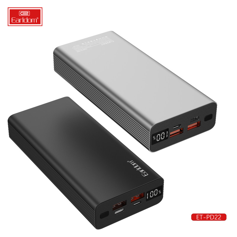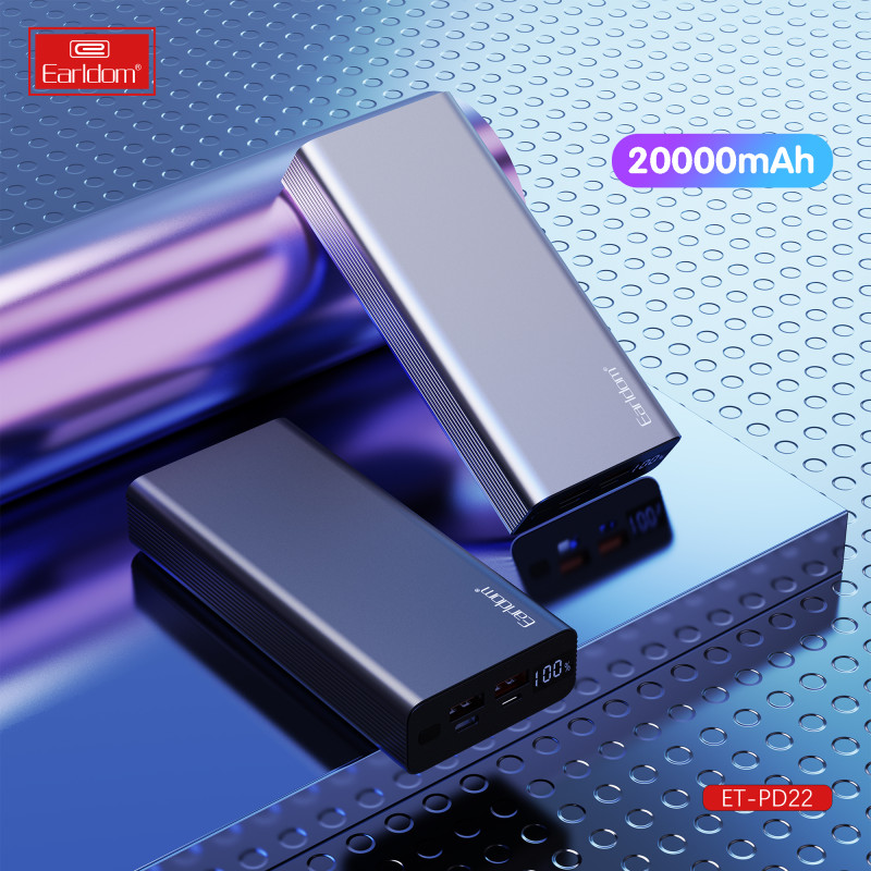 Power Bank Earldom ET-PD22 20000 mAh Metall Alloy PD20W+QC3.0 22.5W стане чудовим вибором для заряджання портативних гаджетів під час частих відключень електрики, тривалих поїздок чи відпочинку на природі. Аксесуар реалізований у стильному дизайні, має компактні розміри та досить невелику вагу.