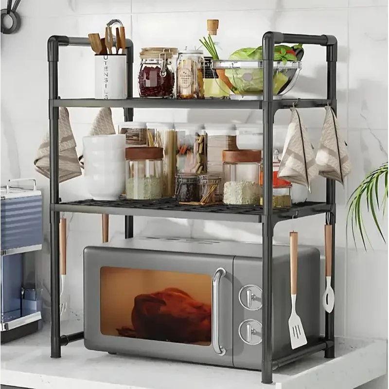 Полиця-органайзер для мікрохвильової печі - це багатофункціональний стелаж для зберігання з 2 або 3 рівнями, яка оптимізує використання простору на вашій кухні або у ванній.