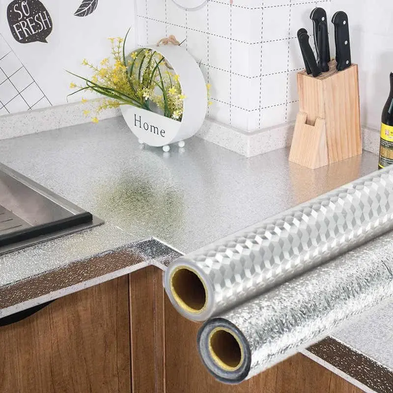 Алюмінієва кухонна фольга-стікер – справжня прикраса інтер'єру, надійний захист Вашої кухні та будь-яких предметів меблів. Призначений як для сухих, так і для вологих приміщень. Вона стійка до стирання, корозії та будь-яких видів бруду. Алюмінієва плівка для кухні протигрибкова, водостійка і термостійка, не роздувається.
