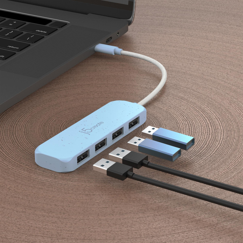 Екологічний хаб USB-C до 4-портового Type-A Gen 2 j5create JCH341 забезпечує додаткову можливість підключення до вашого комп’ютера зі швидкістю передачі даних до 10 Гбіт/с. Ці кишенькові хаби, доступні в трьох різних кольорах, дозволяють підключати додаткові USB-аксесуари для комп’ютера через порт USB-C.