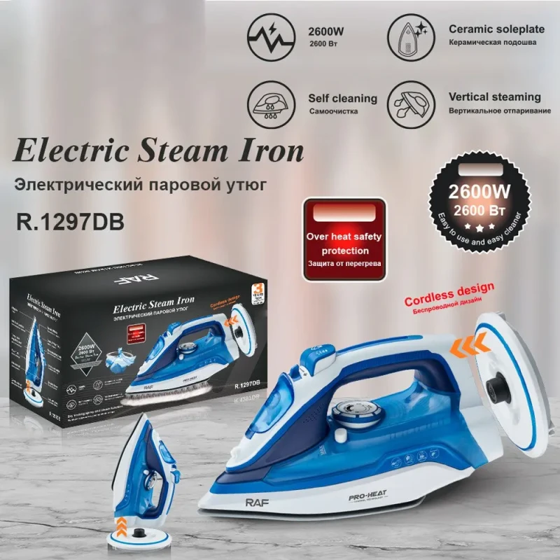 Праска RAF R-12979 B забезпечує просте та ефективне прасування: велика кількість пари розгладжує жорсткі складки, підошва з керамічним покриттям забезпечує чудове ковзання на будь-яких тканинах, а функція очищення від накипу підвищує надійність приладу.