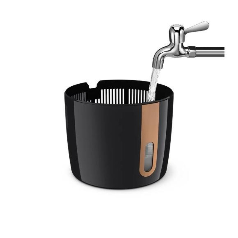 Зволожувач має автоматичний датчик вологості, завдяки якому пристрій вимикається, коли вода в резервуарі вичерпується, і таймер для програмування роботи на 1, 4 або 9 годин.