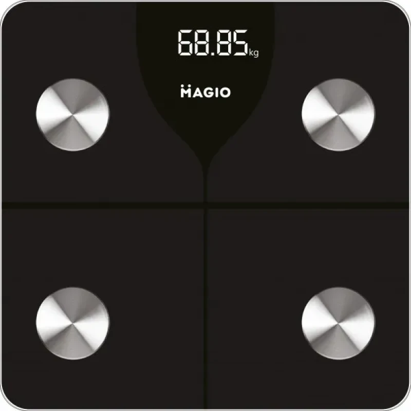 Тип Smart-Електронні Матеріал Поліроване скло Розмір 30 х 30 см Дисплей Світлодіодний Максимальне навантаження 180 кг Ціна поділки 100 г Доступність додатку на телефон App Store, Google Play Увімкнення одним дотиком Так Індикатор перевантаження Так Індикатор низького заряду елемента живлення Так Відключення Автоматичне Вбудований тензометричний датчик Так Тип елементів живлення 3 x AAA (в комплекті) Зважування та визначення Ваги тіла, індекс маси тіла, вміст жирової маси (%), вміст рідини в тканинах (%), вміст м'язів (%), вміст кісткової маси (%), вміст солі в кістках, вміст білка (%), індекс внутрішньоорганного жиру, індекс підшкірного жиру, біологічний вік тіла, тип тілобудови, базовий метаболічний розхід, метаболічний розхід у стані активності Ваги підлогові Magio MG-830 — це смарт-електронні ваги, які забезпечують не лише вимір ваги, але й надають комплексний аналіз стану вашого організму. Завдяки вбудованому тензометричному датчику та сучасним функціям, ці ваги дають точні дані про ваш індекс маси тіла, вміст жирової та м'язової маси, рівень рідини в тканинах, біологічний вік, метаболічний розхід та інші важливі показники. Ваги виконані з полірованого скла розмірами 30 x 30 см, що забезпечує їх стильний вигляд та зручність у використанні. Вони мають світлодіодний дисплей для чіткого відображення результатів і можливість вимірювати вагу до 180 кг з точністю до 100 г. Завдяки автоматичному вимкненню і можливості увімкнення одним дотиком, користування ними буде комфортним і без зайвих зусиль. Що важливо, результати вимірів можна переглядати у мобільному додатку, доступному на App Store та Google Play, що дозволяє вам стежити за своїм здоров'ям та прогресом. Додаток допомагає вам зрозуміти стан організму, що є незамінним для тих, хто хоче контролювати свою фізичну форму та покращувати здоров'я. Ваги працюють від трьох батарейок типу AAA, що входять у комплект, та мають індикатори перевантаження і низького заряду для зручності користувачів. Ці ваги — ідеальний вибір для тих, хто бажає не лише контролювати свою вагу, але й отримати повну картину здоров'я та фізичного стану.