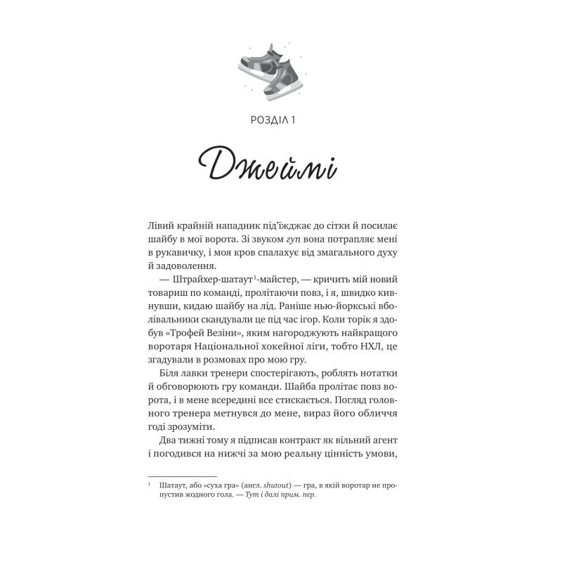 Але з Джеймі нічого не буває просто — він не лише зарозумілий, а ще й дуже гарячий. Однак під цією маскою воротар-буркотун милий і турботливий. Складно не закохатися, якщо тебе так балують і надихають, а ще й прикидаються твоїм хлопцем, щоб примусити ревнувати колишнього.