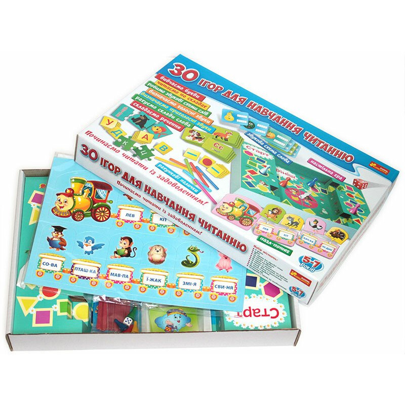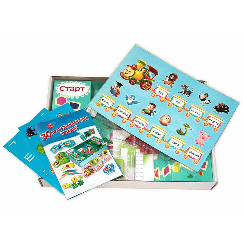 Великий набір «Вчимося читати» перетворює нудне навчання на захоплюю гру! Дорослі стануть на деякий час учнями, а діти – вчителями! У цьому наборі 20 цікавих та веселих розвиваючих ігор з картками, пазлами, 3 варіанти гри на швидкість з настільним полем та фішками, а також додаткові завдання на логіку, від яких неможливо відірватися! Під час гри дитина розвиватиме дрібну моторику, мислення, пам`ять. Виконання завдань у формі гри допоможе малюкам удвічі швидше навчитися розпізнавати букви та читати слова.