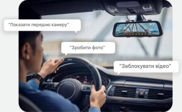 Використовуйте голосові команди для того, щоб зробити фото, заблокувати відео або показати задню камеру. Важлива функція для водіїв, які зобов'язані уважно стежити за дорожніми обставинами та вчасно реагувати на потенційну небезпеку в полі зору.