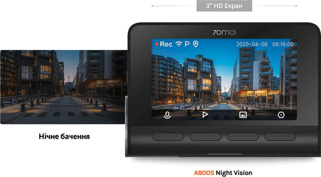 Сумісність з камерами заднього виду дозволить здійснювати одночасну фіксацію з передньої і задньої частин авто. Повноцінний огляд з усіх боків дає максимум безпеки на дорозі, дозволяючи зосередитися на управлінні автомобілем і не відволікатися на дрібниці. 70mai A800S з камерою заднього виду утворюють ідеальний тандем.