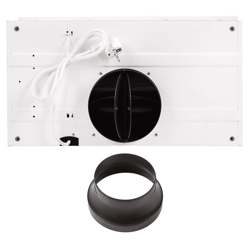 Витяжка монтується безпосередньо у кухонний шафу шириною 60 см, не займаючи додаткового місця на кухні. Видимою залишається частина виготовлена зі сталі, вкрита високоякісною порошковою фарбою. Витяжка ідеально підходить до будь-якого інтер'єру, залишаючи вашу кухню вільною та організованою.