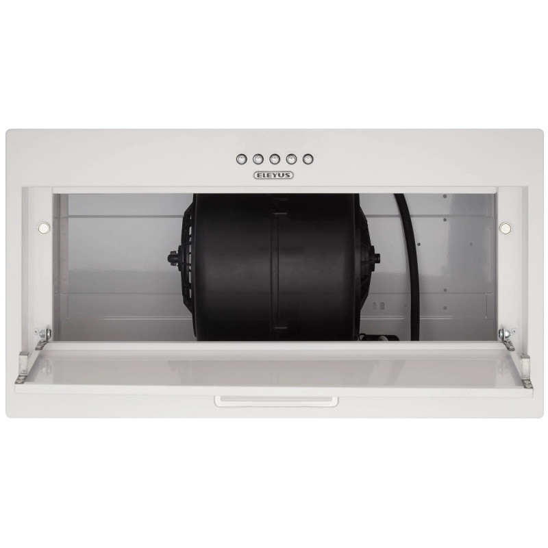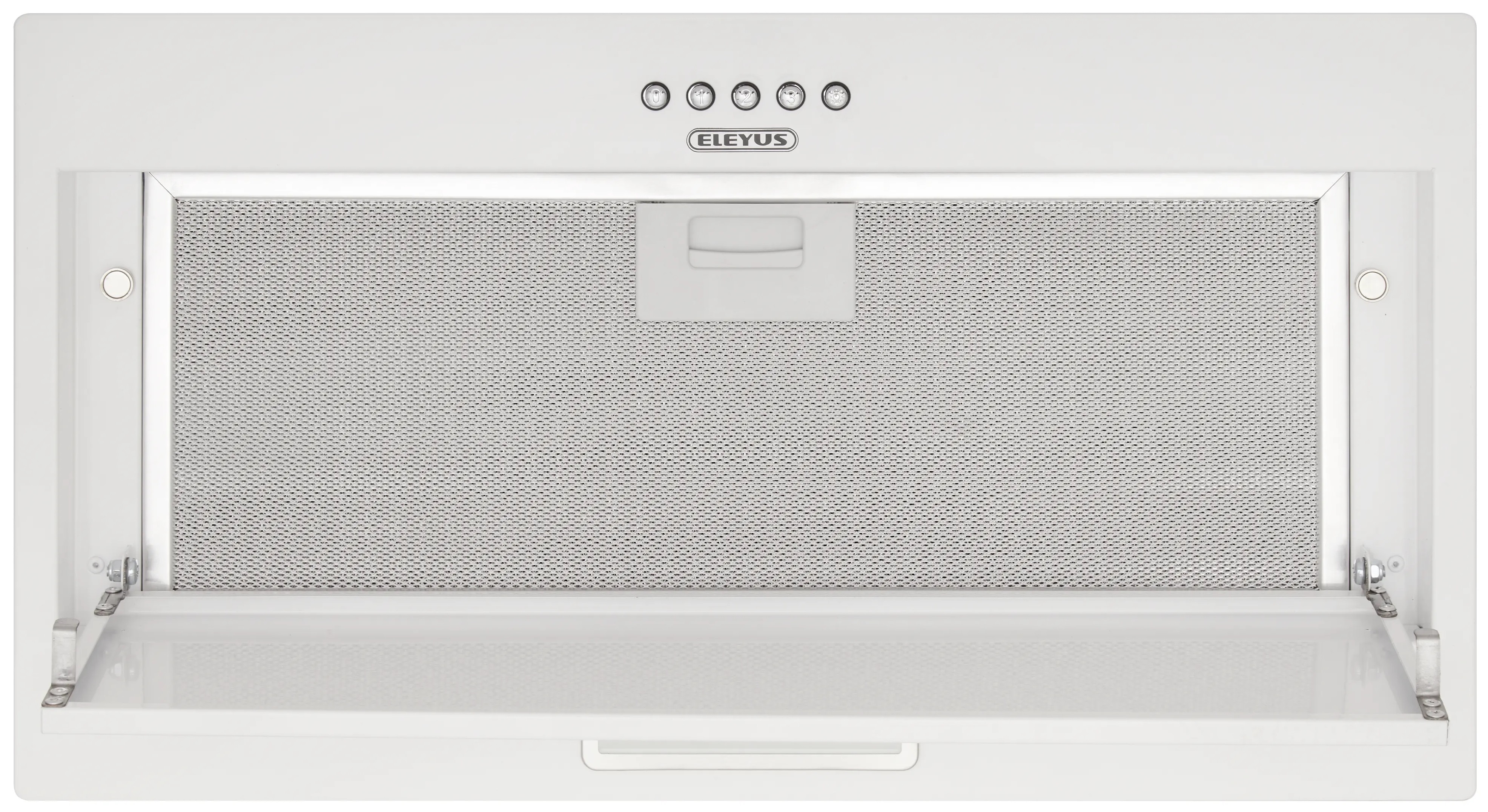 Витяжка повністю вбудовується в звичайний кухонний шафку шириною 60 см. Видимою залишається лише передня панель з нержавіючої сталі, яка стійка до вологості та високих температур. Лаконічний дизайн витяжки гармонійно поєднується з кухнею і у стилі мінімалізм, хай-тек чи модерн.