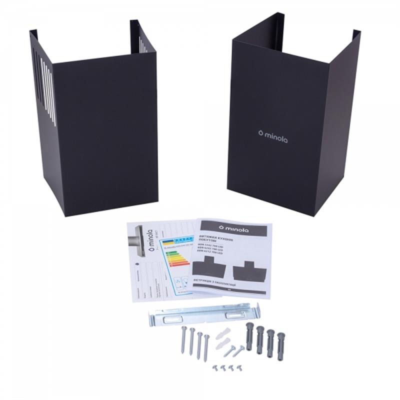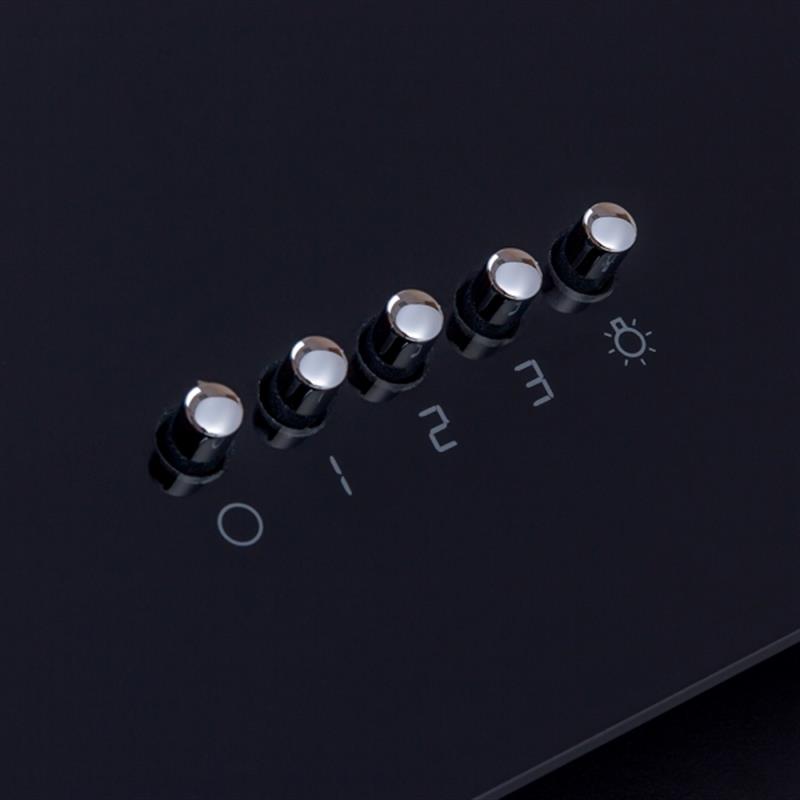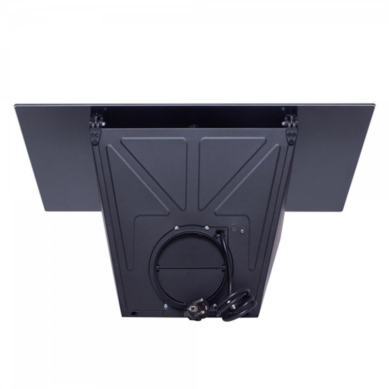 Похила пристінна витяжка, потужність 700 м3/год., Ширина - 595 мм, колір витяжки - чорний. Матеріал витяжки - загартоване скло. Управління механічне. 3 швидкості. 1 мотор. Освітлення 2х1 Вт LED. Алюмінієвий фільтр. Відведення/Рециркуляція.