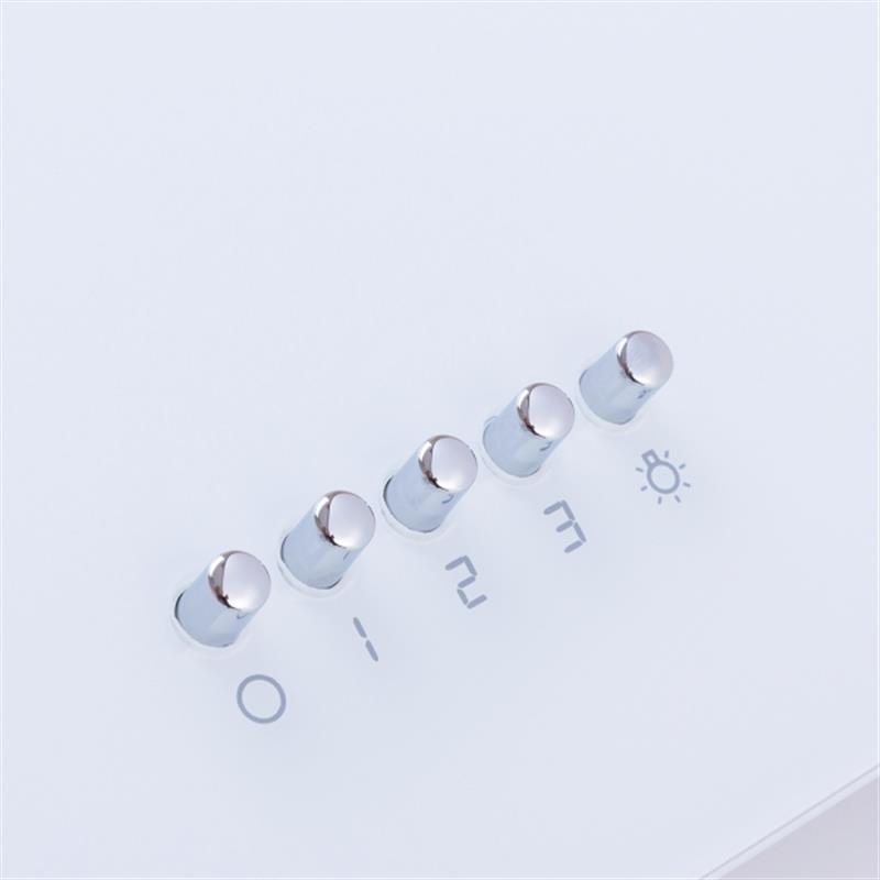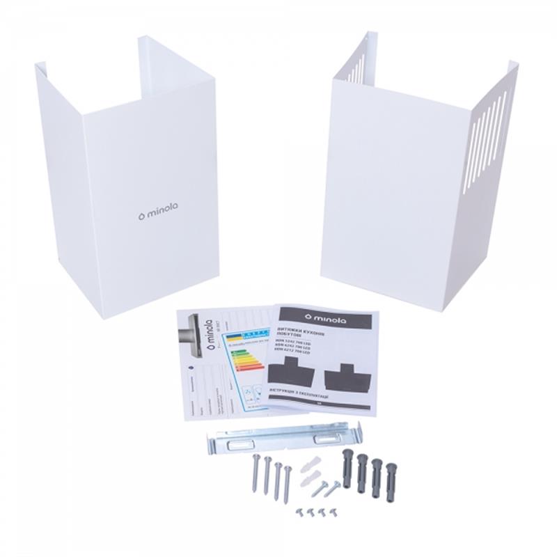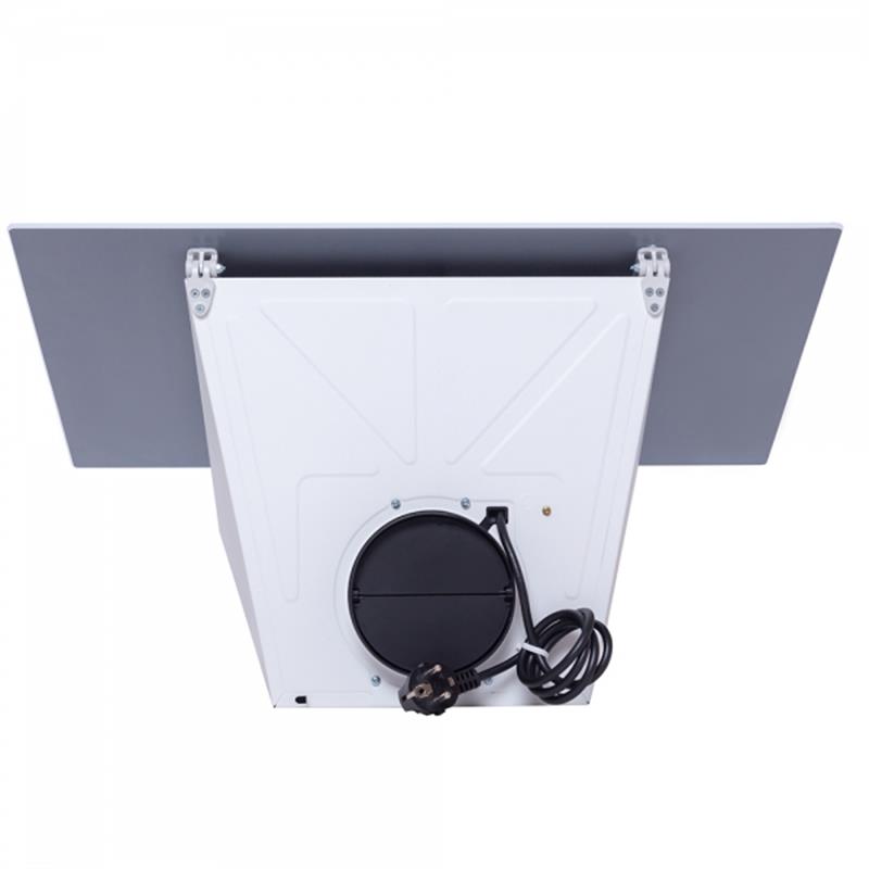 Похила пристінна витяжка, потужність 700 м3/год., Ширина - 595 мм, колір витяжки - білий. Матеріал витяжки - загартоване скло. Управління механічне. 3 швидкості. 1 мотор. Освітлення 2х1 Вт LED. Алюмінієвий фільтр. Відведення/Рециркуляція.