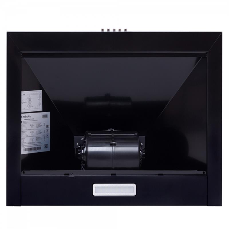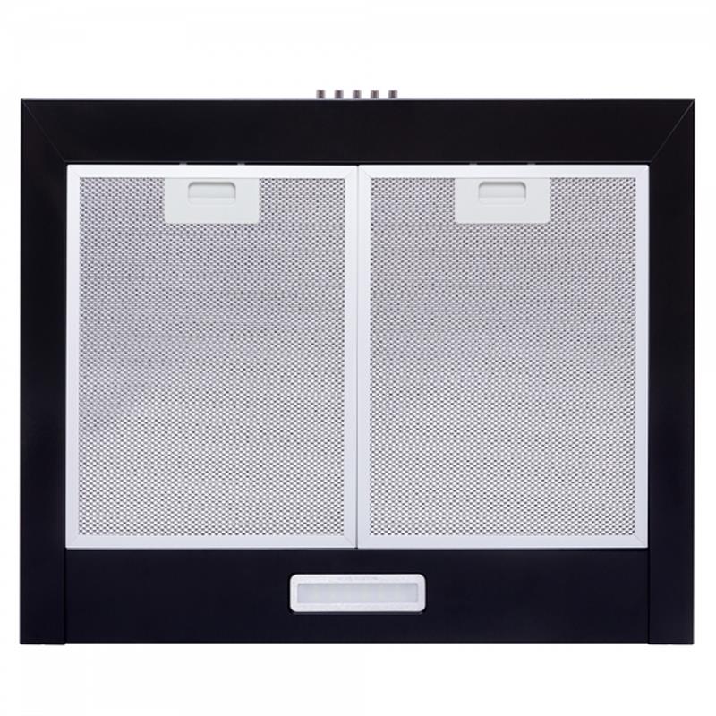 Мініатюрна витяжка, одномоторна, потужність: 700 м3/год. Ширина: 595 мм. Колір чорний. Управління механічне. 3 швидкості. Освітлення: 1 x 2 Вт LED. Алюмінієвий фільтр. Режими роботи: Відвід/рециркуляція. Рівень шуму: 52-61 Дб.