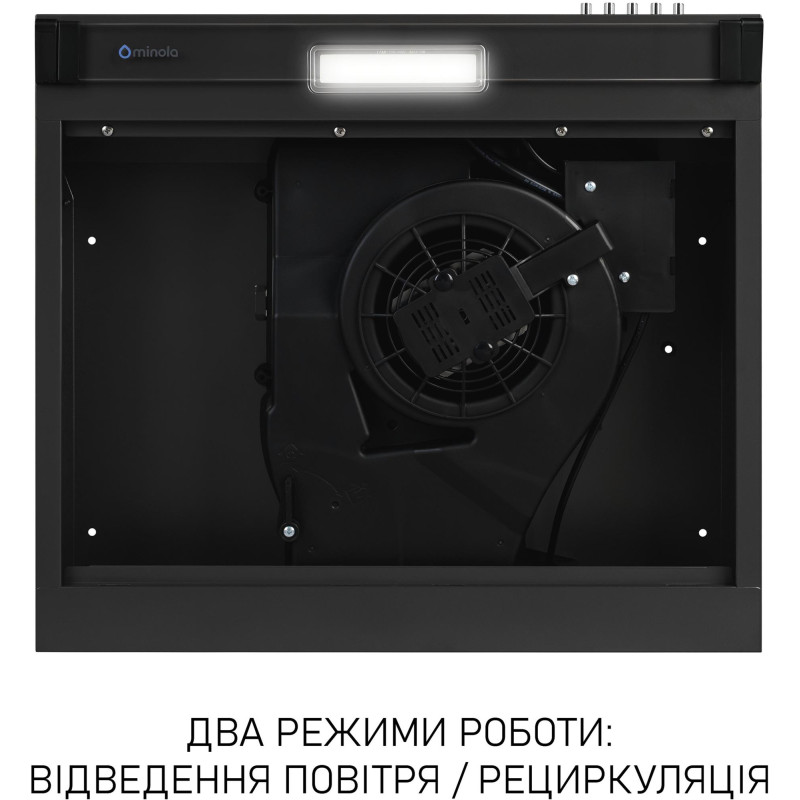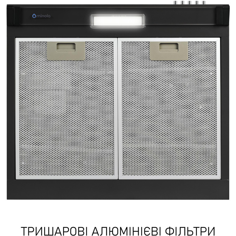 Minola HPL 522 BL — це стильна та компактна плоска витяжка, яка поєднує потужність і витонченість. Скляний козирок та глибокий чорний колір роблять її елегантним акцентом у будь-якому інтер’єрі, а продуктивність 450 м2/год дозволяє підтримувати чистоту повітря навіть на кухнях до 15 м2. Модель вирізняється зручним механічним керуванням, LED-підсвіткою та можливістю роботи в режимах відведення і рециркуляції. Вона створена для тих, хто цінує простоту, якість і стиль у кожній деталі.