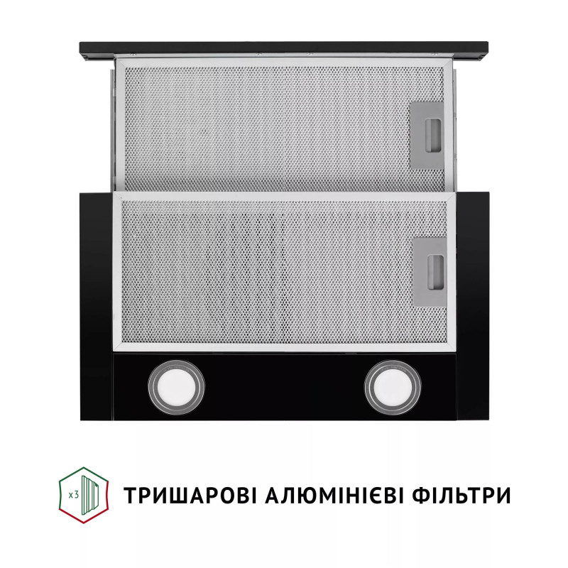 Витяжка обладнана двома тришаровими алюмінієвими фільтрами, які ефективно захищають мотор та інші деталі пристрою від забруднення жиром і випарами. Їх можна легко вимити в теплій мильній воді або в посудомийній машині.