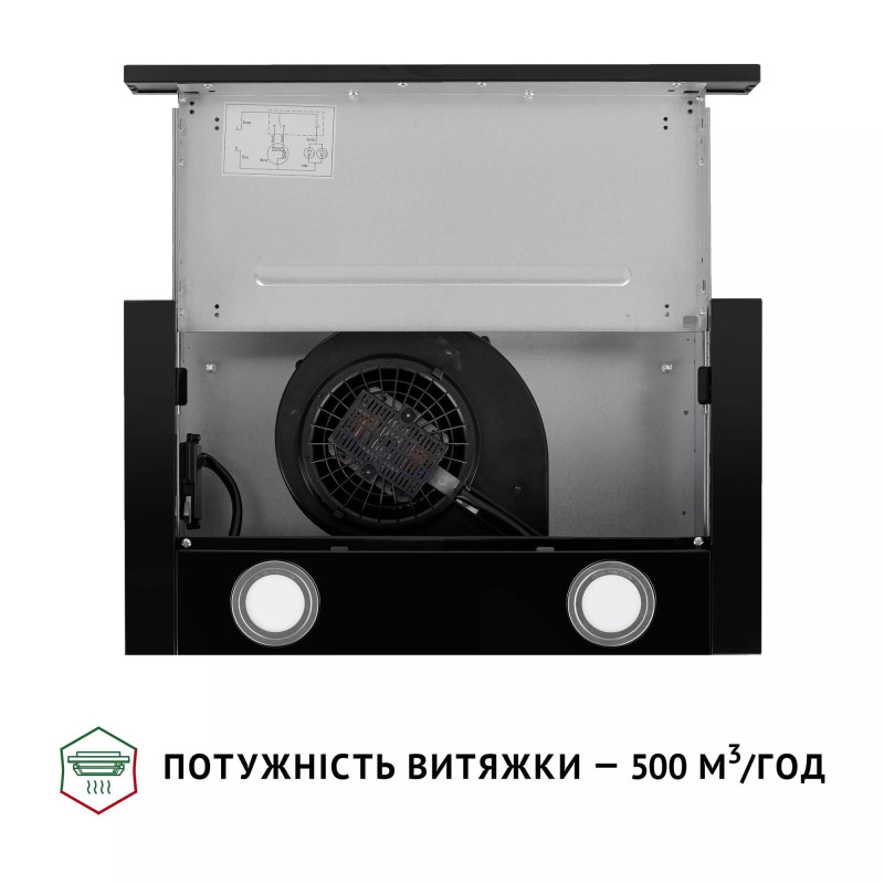 Освітлення витяжки складається з двох LED-ламп, потужністю по 1.5 Вт, які розташовані на задній частині витяжки та сприяють кращому освітленню робочої поверхні. Підсвічування є комфортним для очей і працює як додаткове джерело освітлення на кухні. Робочий ресурс світлодіодів у рази вищий, ніж у звичайних ламп, а споживання енергії мінімальне. Крім того, світлодіоди досить витривалі під час активної експлуатації.