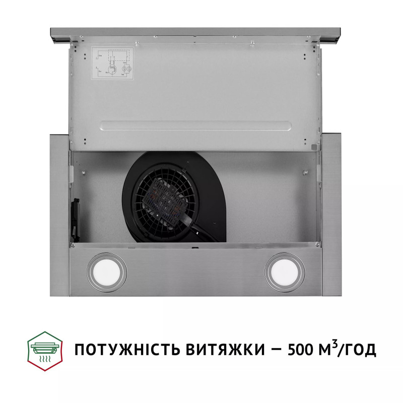 Освітлення витяжки складається з двох LED-ламп, потужністю по 1.5 Вт, які розташовані на задній частині витяжки та сприяють кращому освітленню робочої поверхні. Підсвічування є комфортним для очей і працює як додаткове джерело освітлення на кухні. Робочий ресурс світлодіодів у рази вищий, ніж у звичайних ламп, а споживання енергії мінімальне. Крім того, світлодіоди досить витривалі під час активної експлуатації.