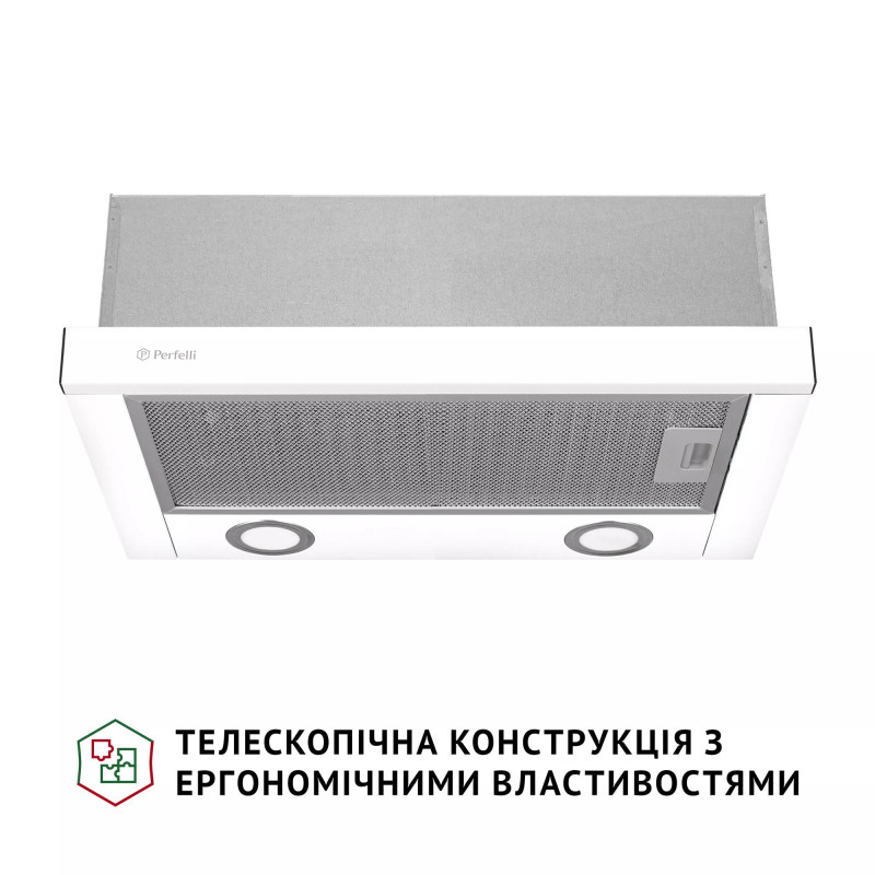 Телескопічна кухонна витяжка Perfelli TL 502 WH LED має ергономічні властивості, тому дозволяє раціонально використовувати простір у зоні над варильною поверхнею. Витяжка виготовлена із фарбованого металу. Цей матеріал має чудові естетичні якості, високу зносостійкість і стійкість до механічних пошкоджень і перепадів температур.