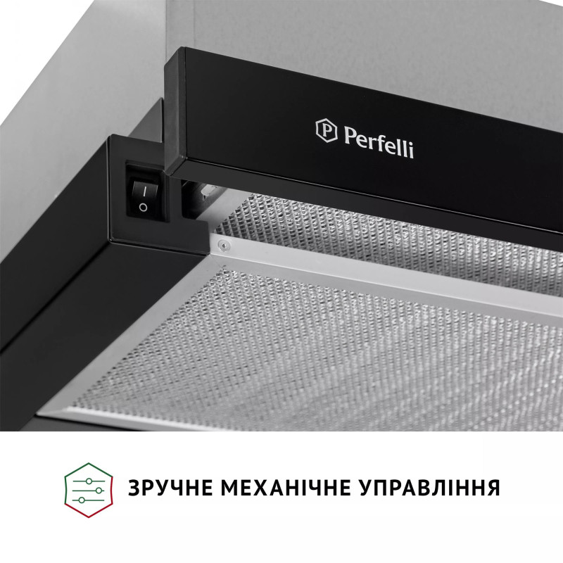 Кухонна витяжка Perfelli TL 602 BL LED приваблює дизайном та сучасним підходом у розробці витяжок для всіх, хто бажає зробити свою кухню стильною та функціональною. Максимальна потужність пристрою з вільним виходом повітря становить 500 м3/год. Вона бездоганно виконує свої функції за лічені хвилини. Пристрій очищує повітря від запахів та випарів під час та після приготування, підтримуючи свіжість у приміщенні. Стандартна ширина дозволяє використовувати цю модель на кухні будь-яких розмірів.
