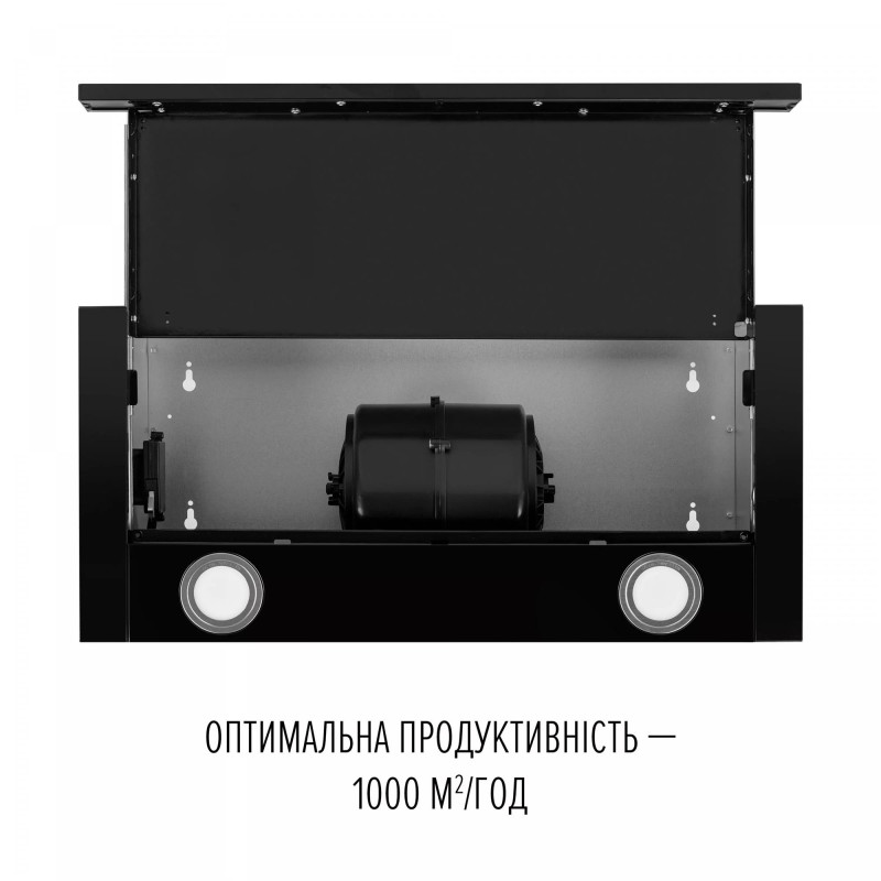 Рівень шуму витяжки не перевищує 61 дБ і є комфортним для людини та домашніх тварин. Витяжка для кухні може працювати в режимі відведення повітря, при якому забруднене повітря виводиться назовні через гнучкий трубопровід, або в режимі рециркуляції з використанням вугільного фільтра (не входить до комплектації).