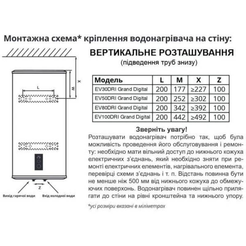Спосіб монтажу | Вертикальний |
