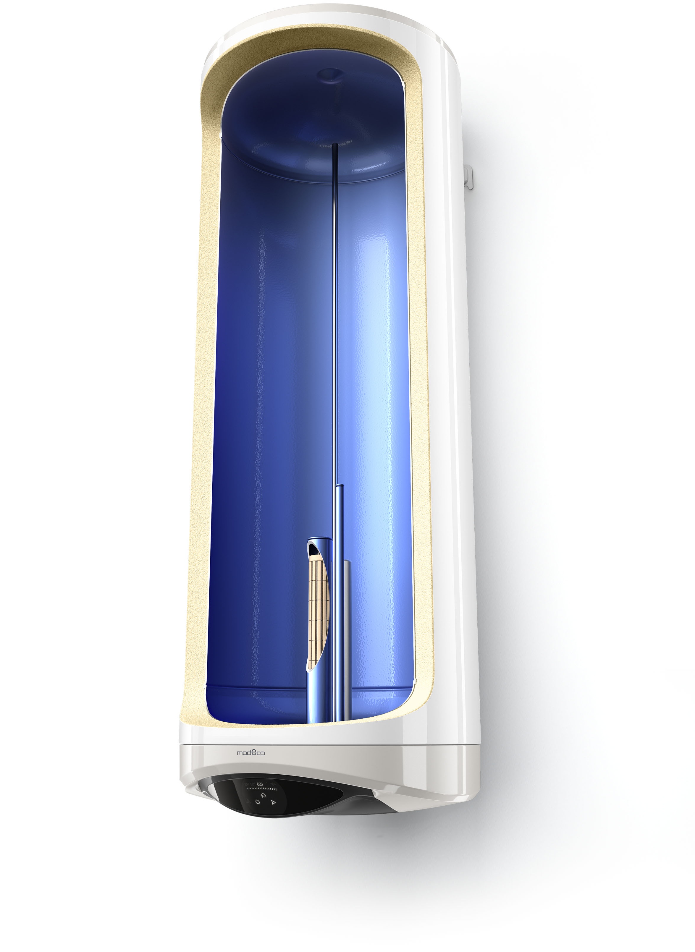 | Інші конструктивні особливості | Насадка з нержавіючої сталі (PISTON ефект), що уповільнює змішування холодної і нагрітої води Відсутність термального мосту між внутрішнім баком і монтажною планкою Збільшена на 80% теплоізоляція |