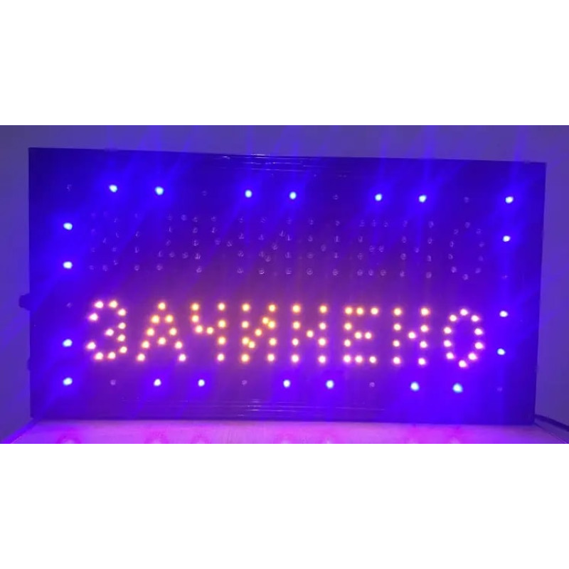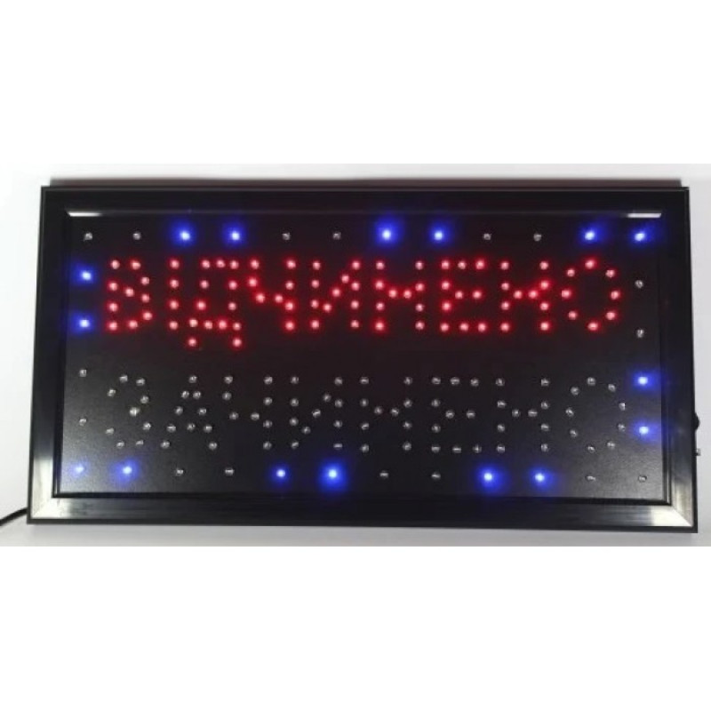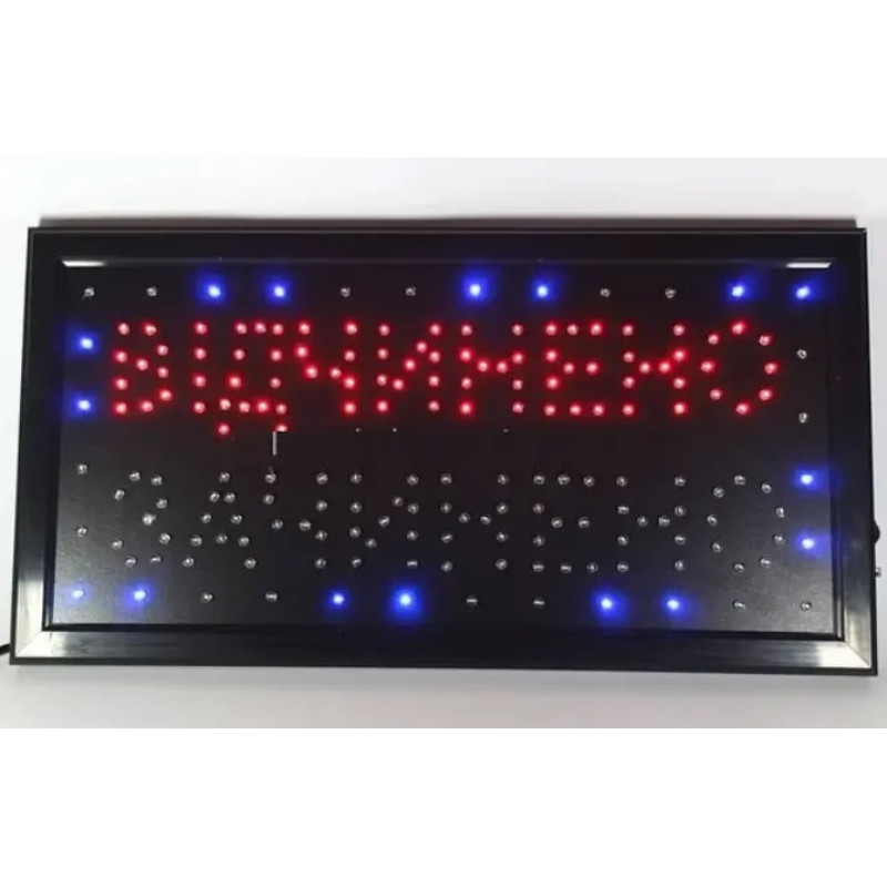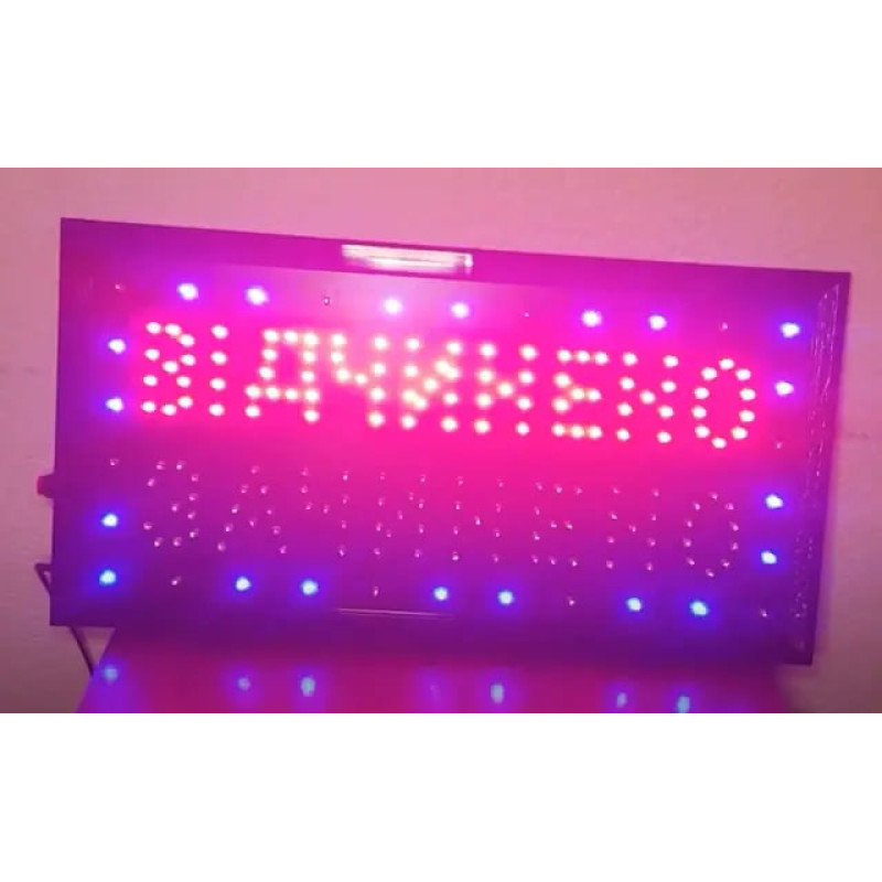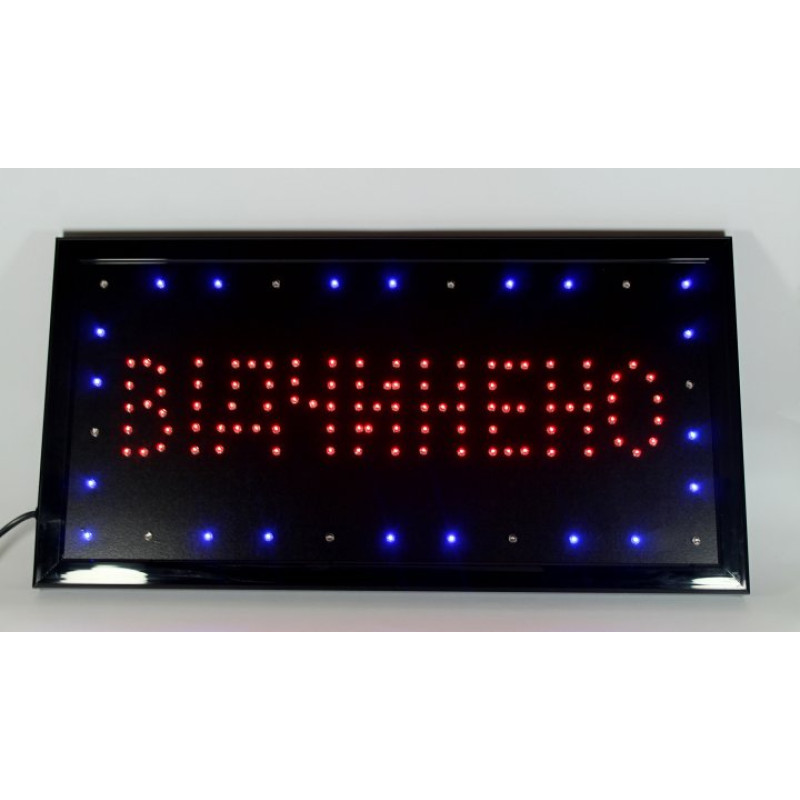 Світлодіодна вивіска LED табло для бару, кафе. Яскрава анімація. Світлодіоди різних кольорів: червоний, синій. Світлодинамічний ефект руху світлодіодів за вивіскою. Яскраві та привабливі LED вивіски табло сприяють приверненню уваги покупців та відвідувачів. Монтаж світлодіодних вивісок так само простий, як безпечний: потрібно просто повісити її на видному місці і включити в розетку. Світлодіоди практично не нагріваються, споживають мінімум енергії (що особливо важливо, враховуючи зростаючі ціни на електроенергію і необхідність тримати вивіску включеної цілодобово). Такі вивіски легко і без наслідків переносять низькі температури, а загальний термін служби окремого світлодіода досягає 100000 годин, на відміну від 35000 для неону і 4000 годин служби ламп розжарювання. Таким чином, універсальність, довговічність, безпека та екологічність роблять світлодіодні вивіски більш привабливими, ніж неонові або інші вивіски.